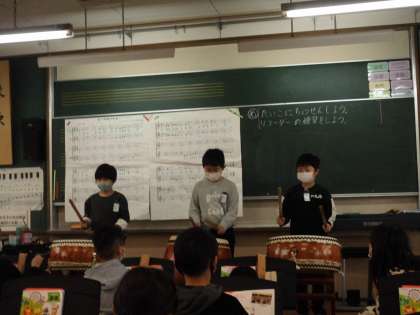 太鼓に挑戦の学習をしました。