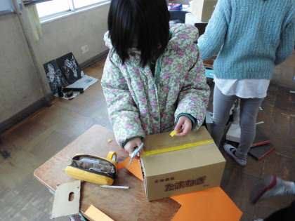 箱を使って,工夫をして飾りつけをして学習をしました。