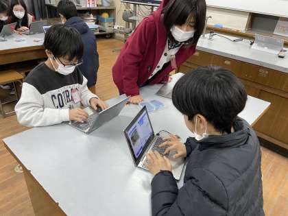 プログラミングに挑戦しています。LEDライトの光り方を様々にプログラミングして,楽しんでいます。