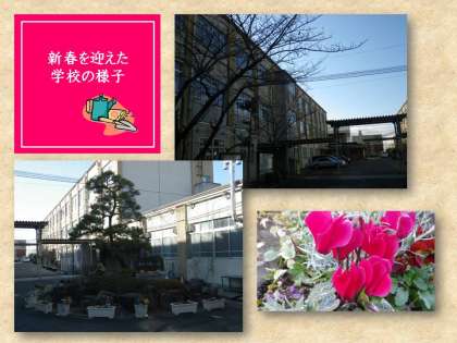 まだ学校に,子どもの姿はほとんど見られません。来週から授業が始まります。それに向けて教職員が準備をしている姿が少し見られる程度です。静かな新春の学校風景です。花壇やプランターには,園芸ボランティアの皆さんと園芸委員会の子どもたちによって植えられた花が,美しく咲きそろってきました。