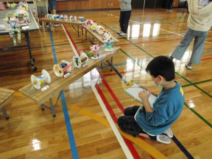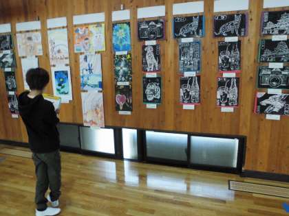 体育館では行内作品展があり,今日は子どもたちが鑑賞にいきました。