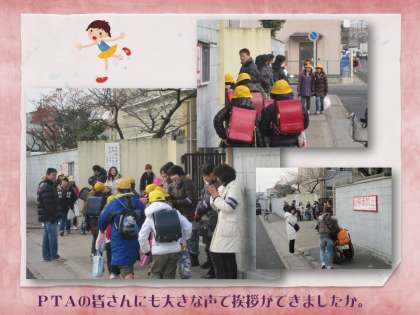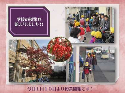 本日10日より,学校の授業が始まりました。子どもたちは,寒さに負けることなく元気よく登校してきました。冬休み明けの授業初日です。PTAの皆さんが校門に立って挨拶運動も進めて下さいました。自分からの挨拶ができたでしょうか。挨拶がきちんとできるかどうか,まだまだ人によって差がありますよ。家庭でも地域でも,そして学校でも「自分から」挨拶ができるようにしましょう。