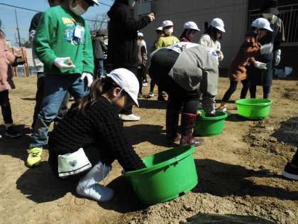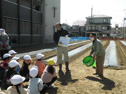 今日は、農業委員の皆さんと下鳥羽はぐくみファームでじゃがいもを植えました。