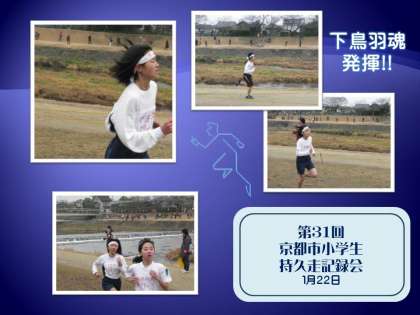 1月22日,日曜日に鴨川河川敷で「京都市小学生持久走記録会」が行われました。本校からも二十数名の子どもたちが参加し,見事な走力で全員完走しました。