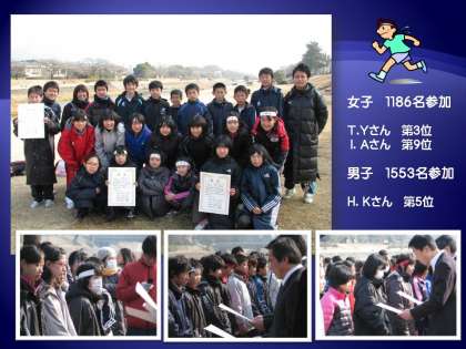 日頃の練習の成果をよく発揮し,ゴールまで,どの子も力強い走りを見せてくれたことを嬉しく思います。よく頑張りましたね。本校から,女子2名,男子1名の入賞者も出ました。おめでとう!