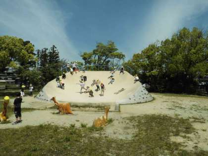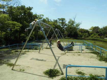 公園に着くと大きな滑り台やブランコなどがあり、