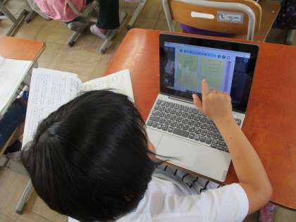 教科書に載っている漢字から、同じ部分をもつ漢字を探して、ギガ端末で共有しました。