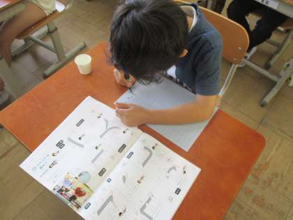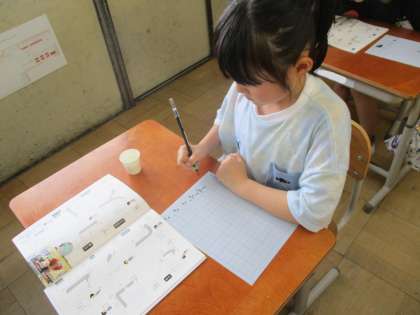 「とん、すー、ぴた」を意識して、丁寧に書き進めていました。