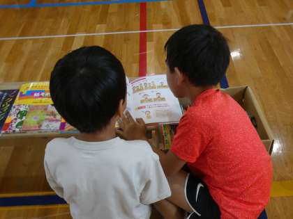 たくさんの本があって1冊に決めることが難しかったようですが、一生懸命読みながら本を選んでいました。