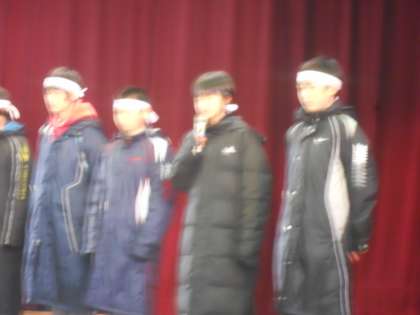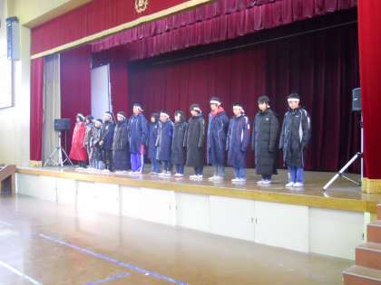 2月7日(火)中間休みに京都市小学校大文字駅伝大会に出場する本校6年生の代表選手を励ます会を行いました。これまで仲間とともに厳しい練習に取り組んできたみなさん,自分の持てる力を発揮して頑張ってください。