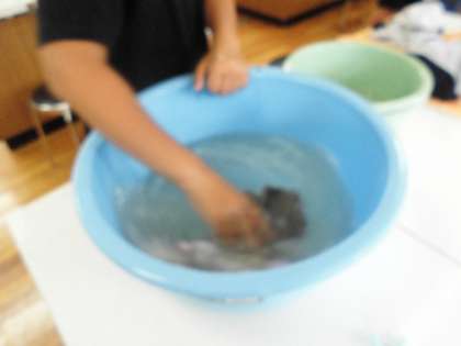 6年生の家庭科では、きれいに衣服を洗いました。