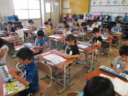 歌と鍵盤の美しいハーモニーが、教室に響いています。