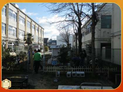 今日は,早朝からおやじの会の皆様が,南校舎の隣にある「ふれあい広場」に集まって下さいました。ここに「堆肥コンポスト」を製作して下さるのです。本校では,園芸ボランティアの皆様が,委員会の子どもたちを指導しながら,美しい花壇づくりに励んで頂いています。その際に必要な堆肥をここでつくろうというものです。