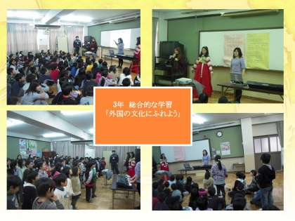 3年生は現在,総合的な学習の時間に「外国の文化」について学習を進めています。本日はその学習の一環として国際交流を行いました。韓国の留学生3人をゲストティーチャーとしてお招きし,韓国の文化や歴史,童謡などを教えていただきました。子どもたちは楽しく韓国のことについて知ることができたようです。