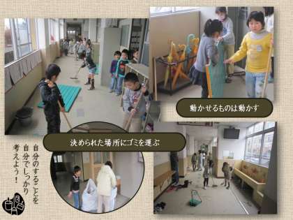 清掃活動がしっかりできていること。これは大変重要なことです。自分のやるべきことをしっかり理解して活動に取り組めているかどうか。校内をまわっていると,先生たちがそれぞれの場所で,子どもたちを指導していました。子どもまかせにしておいては,しっかりした清掃活動はできません。清掃活動にも,「子どもたちに考えさせる」指導が必要なように思います。