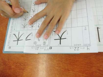 とめ・はね・はらいに気を付けて、集中して書くことができています。