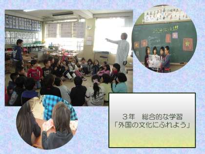 2月29日の5校時に様々な国の留学生をゲストティーチャーとしてお招きしました。1組はポーランド,2組はサウジアラビア,3組はベトナム,4組は中国の方に来ていただきました。子どもたちは事前に,各国の歴史や文化について調べ学習を行い,自分たちの成果をゲストティーチャーの方々に発表しました。その後は,それぞれの国の遊びなどを教えていただき,一緒に遊びました。どのクラスもたくさんの外国の文化にふれられたようです。