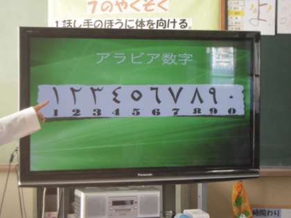 スライドショーで国の紹介をしてもらったとき,日本との距離を知り,「意外と遠いんだな」と感じた子もいました。