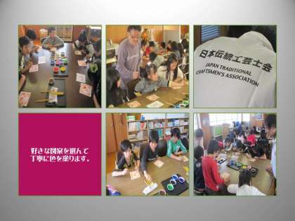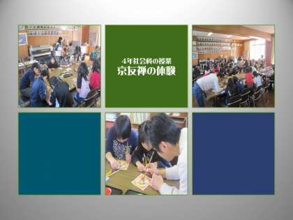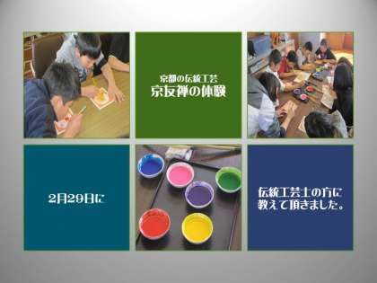 2月29日(水)に,4年生の「京友禅体験学習」が行われました。普段は京友禅のお仕事に従事されておられる方々,伝統工芸士の方々が来校してくださり,子どもたちに直接指導して下さいました。