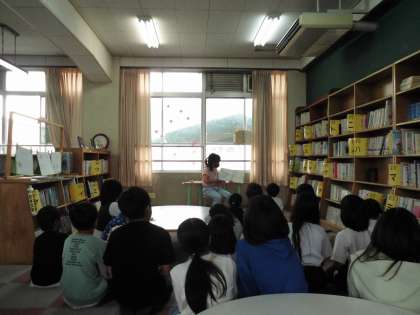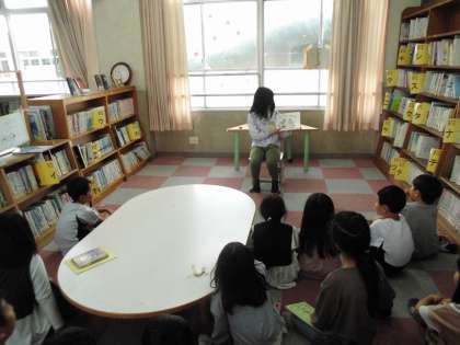 図書委員会が、中間休みに図書室で読み聞かせをしてくれました。