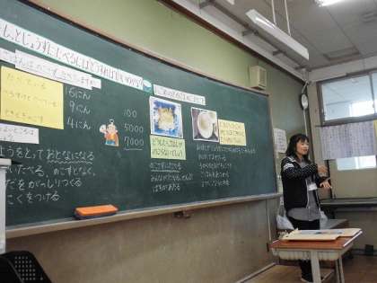 残飯があって悲しいこと、お茶碗にお米がついたまま返却されていて悲しいことが書かれており、みんなでどうすればいいのか考えました。