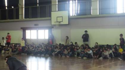 朝会で図画工作や書き初め展,漢字検定の満点など,いろいろな場で活躍した子どもたちの表彰が行われました。