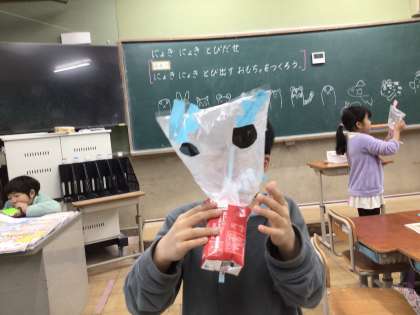 空気で膨らますと箱からとびだす仕組みに大喜びの1年生でした。