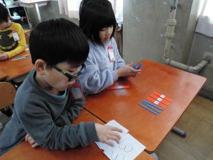 10のまとまりと、ばらに分けて、数え棒を使って大きい数を表しました。