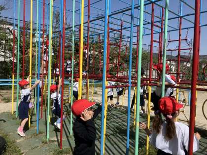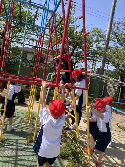 はじめての総合遊具にどきどき、わくわくしながら挑戦している様子の子どもたちでした。