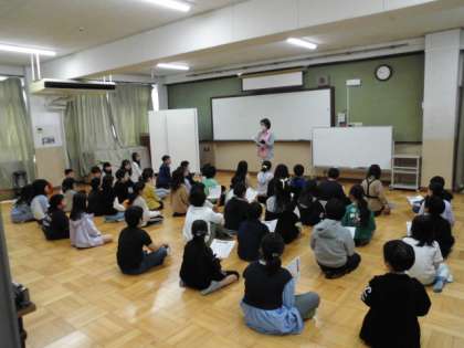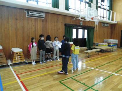 4年生がみんあ集まって、「1年生を迎える会」に向けての活動をしました。