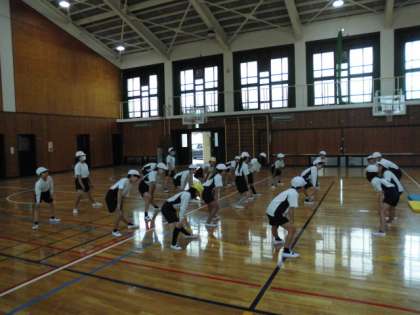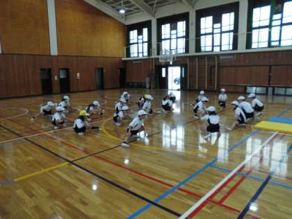 次はどんな運動が必要なのか考えながら、自分たちで準備体操に取り組んでいます。