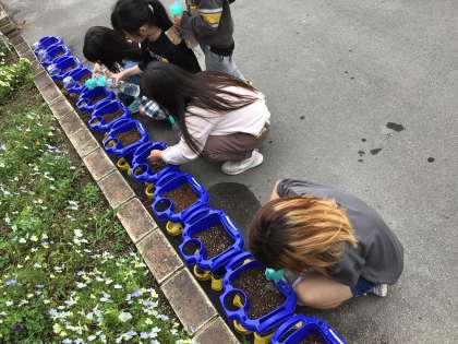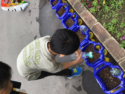 生活科の学習であさがおの種を蒔きました。