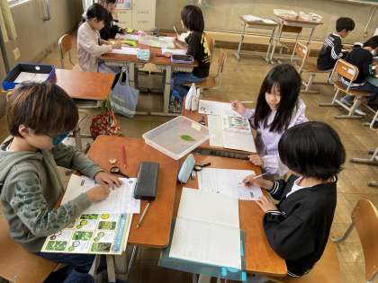 チョウの成長の様子を学習しています。