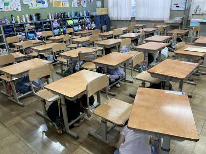 地震が起きた時にはどうすれば自分の身を守れるのかをみんなで考え、実際に一次避難と二次避難をしました。
