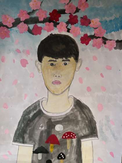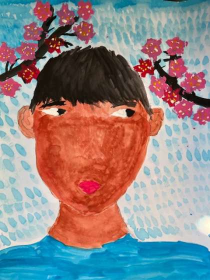 4月から書き始めた図工科「春と私」の自画像も完成が近づいています。