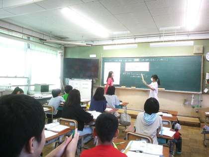 発表者の言ったことをとなり同士で伝え合うこともしているので、発表をよく聞いて再現できるようにしていました。