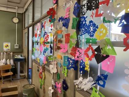 教室につるしてみると、いつもより教室が明るくなったような気がします。
