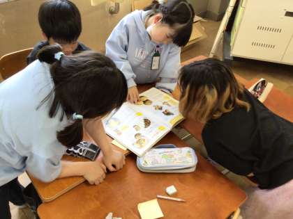 ジャガイモやサツマイモについて、図書館の本を使って調べました。