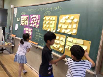 調べて分かったジャガイモやサツマイモのヒミツについて、ふせんに書いて集めました。