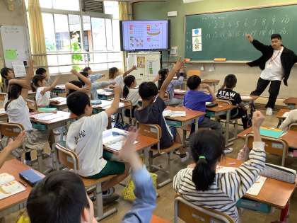 外国語の学習でA.L.T.の先生と数をつかったゲームをしました。