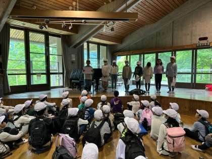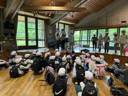 これから宿泊棟に入り、お風呂の準備です。生活係からトイレやお風呂のマナー、シーツの畳み方の説明がありました。