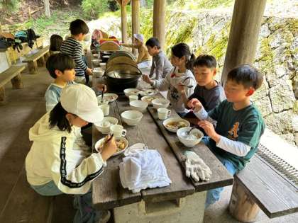 出来上がりました。みんなでいただきます!