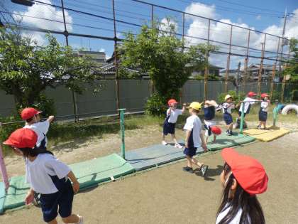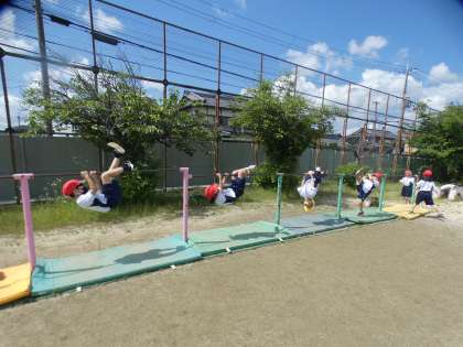 友達とアドバスし合いながら、技の練習を頑張っています。