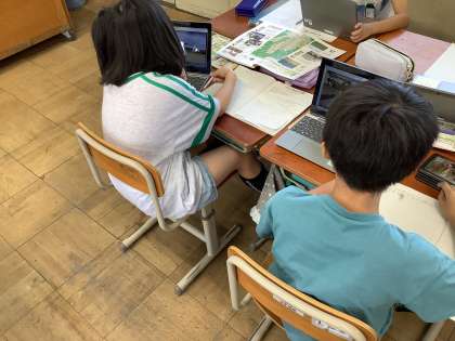 GIGA端末を使って動画を見たり、教科書から必要なことを見つけたりしてまとめていました。