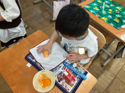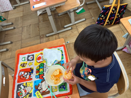 ひんやり冷たいみかんに子どもたちは大はしゃぎでした。