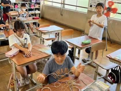 針金を使って思い思いの作品を作ろうと、一生懸命考えるうちに、みんなの顔も、もう真剣になっていきます。