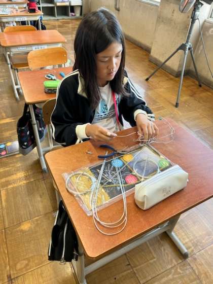 針金を使って思い思いの作品を作ろうと、一生懸命考えるうちに、みんなの顔も、もう真剣になっていきます。