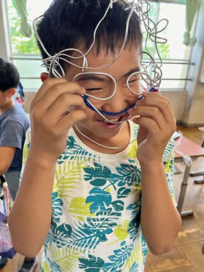 針金を使って思い思いの作品を作ろうと、一生懸命考えるうちに、みんなの顔も、もう真剣になっていきます。