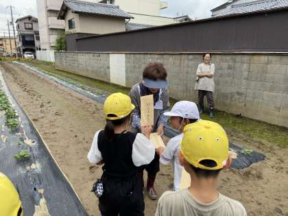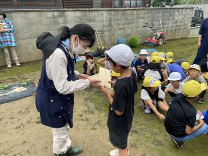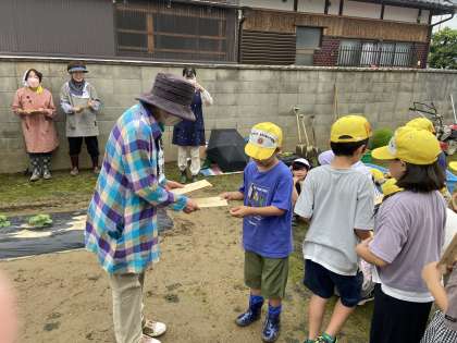 収穫の後には、来週のジャガイモパーティーの招待状を農業委員のみなさんに手渡しました。