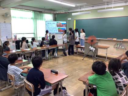 この日は、地震調査班の報告会。地震が起きたときに、どのような行動をすればよいのか。また、日ごろから何を準備すればよいのかを、報告してくれました。